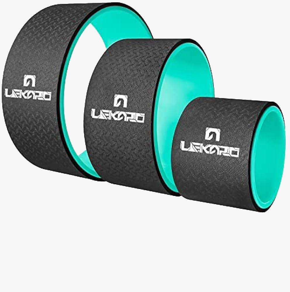 Rueda de yoga para estiramientos profundos y alivio de tensiones en la espalda. Fabricada con materiales resistentes y confortables.